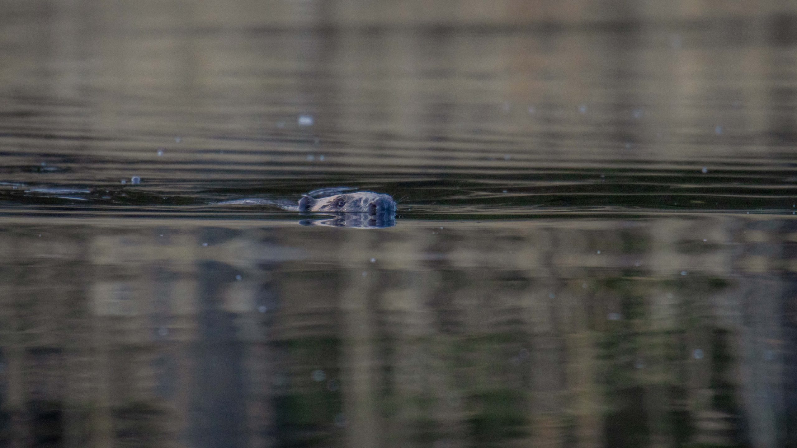 Plötsligt händer det – bävern kommer simmande. Den är rätt långt bort och inte så tydlig, men det är helt klart en bäver och trots att det inte blir några bra bilder är naturupplevelsen stark.