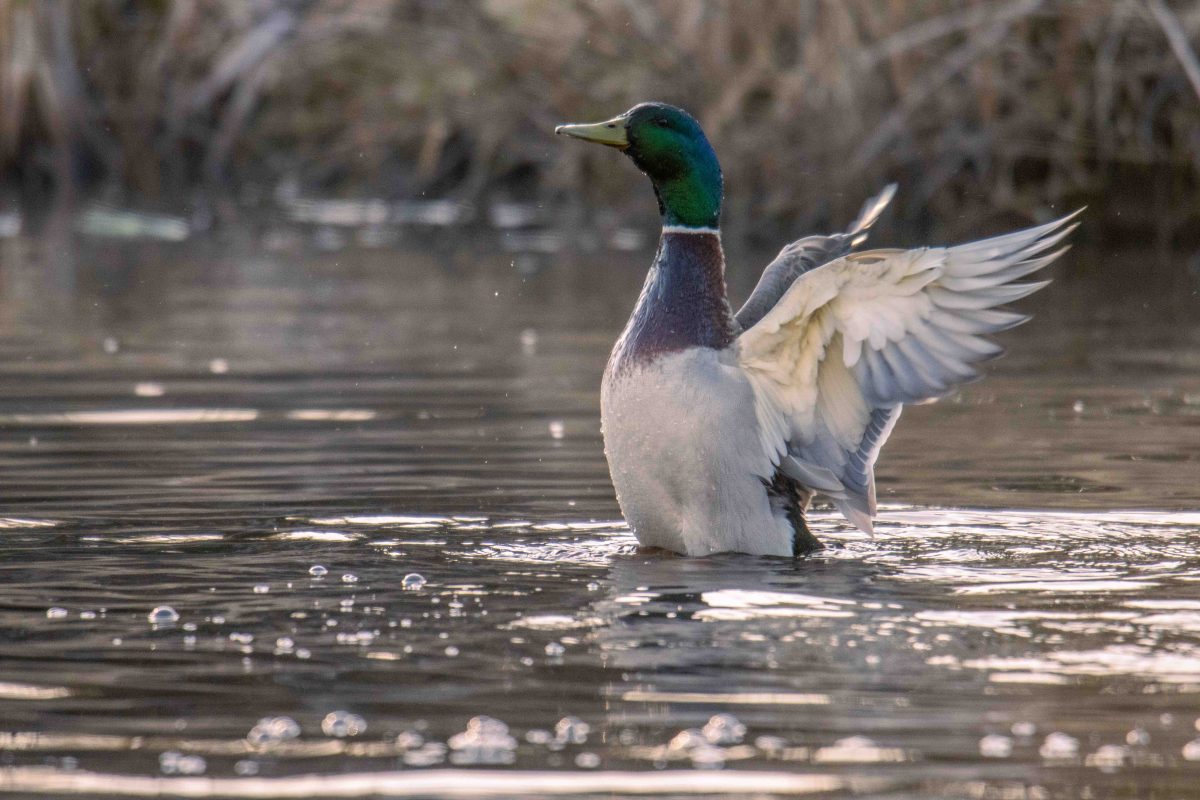 Det är full aktivitet på gräsänderna. Ett par där honan är intensivt uppvaktad av hanen, men också ett gäng ungkarlar som driver omkring och inte helt verkar ha accepterat att hon är upptagen. Att ha möjlighet att välja sin partner kan nog ha sin poäng, men både Solbritt och jag tycker faktiskt lite synd om henne ibland.