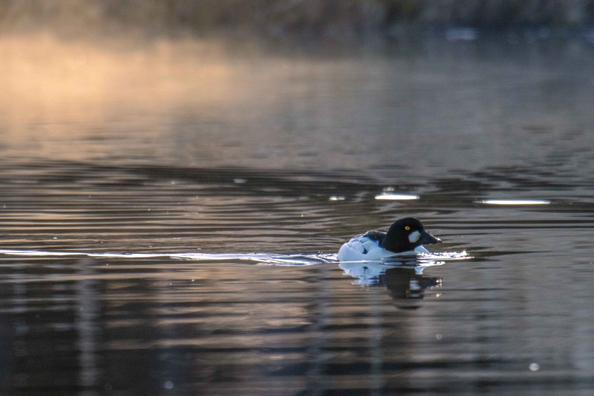 Strax före 5 var vi framme vid vår destination, hängde ryggsäckarna på ryggen och gick en kort promenad fram till Kolardammarna där det finns ett stort bäverbo. Trots närheten till bebyggelse infann sig känslan av att vara i naturen ändå direkt. Vi plockade fram vår utrustning, la oss på magen och riktade våra objektiv ut mot vattnet där dimmälvorna dansade morgondans. Skulle det rentav komma en bäver simmande där borta i kröken? Vi låg tysta och väntade.