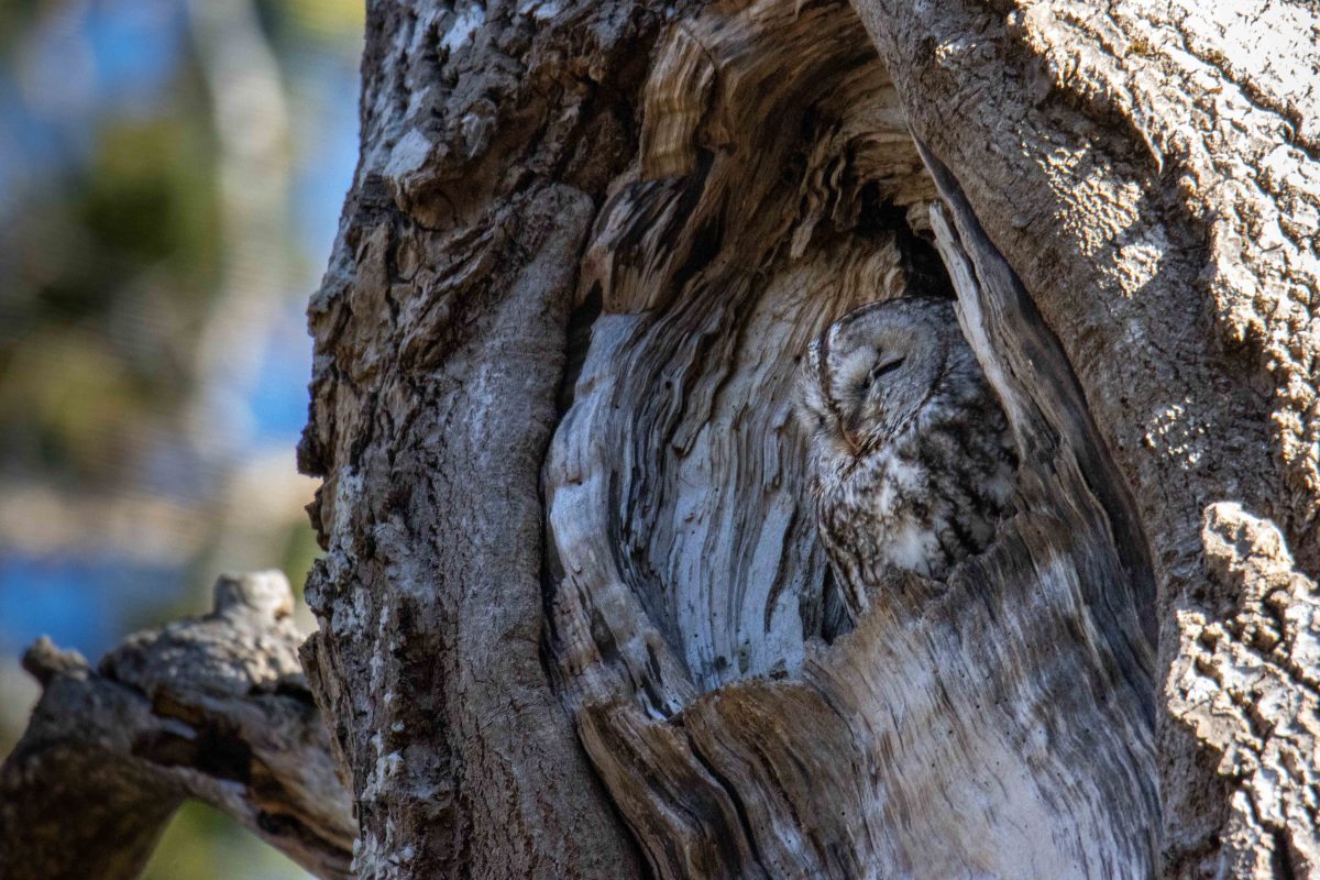 Här nånstans ska trädet vara, sa Solbritt och menade alltså trädet med kattuggleboet. Nej, kanske en liten bit längre bort. Jag hade bara en vag uppfattning om hur ett ugglebo ser ut, men skannade frenetiskt varje trädstam upp, ner, upp efter tecken på något hål som skulle vara lämpligt.