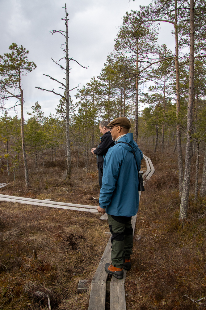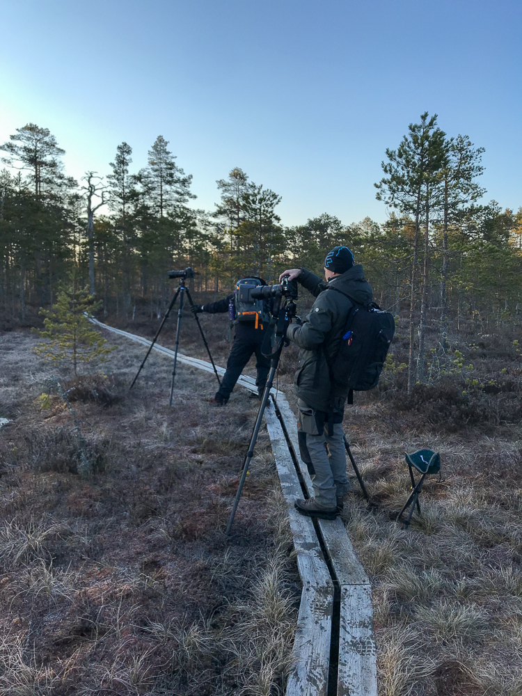 Kameran sitter på stativ för att minimera rörelseoskärpa i bilderna, men ”marken” vi står på består av gungig torv så minsta lilla steg från någon i gruppen innebär stor risk för oönskade effekter i allas bilder. Här gällde det att kommunicera innan förflyttning.