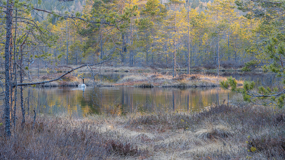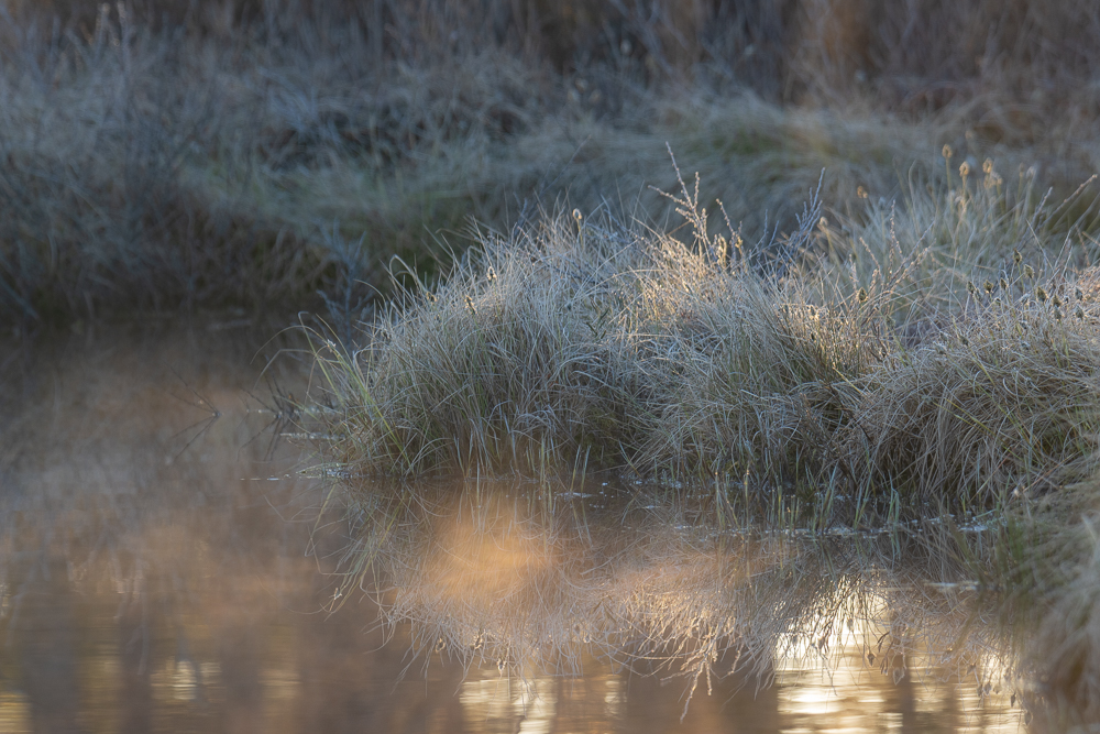 I takt med att solen steg över horisonten ändrade sig både ljusets färg, karaktär och riktigt. Det gav utrymme för både stora möjligheter och utmaningar. Självklart måste man hela tiden ha koll på och justera inställningarna, men minst lika viktigt är det att flytta sig. Plötsligt är ljuset inte längre intressant vid den stora gölen utan vi flyttade oss till gölen bredvid, som så var dränkt i ett gyllene ljus – ”the golden hour”.