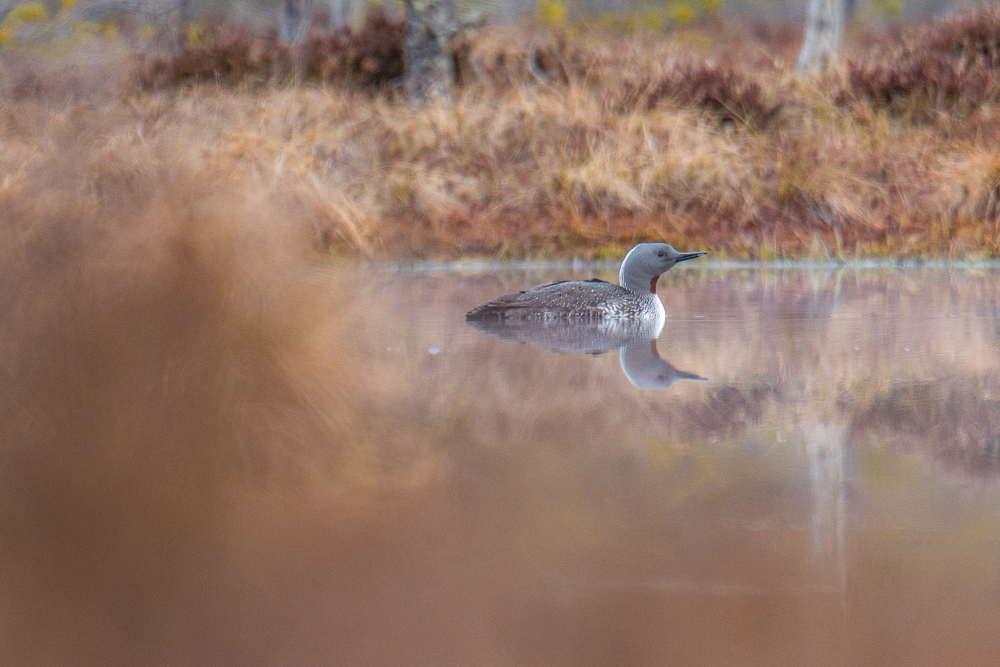 Den här mossen är inte bara vacker som den är utan den är också hem och häckningsplats för ett flertal fåglar. Framför allt anses den vara en av smålomens favoritplatser. Jag hade aldrig tidigare sett en smålom så för mig var det stort att få en första glimt av den vackra fågeln. Att få möjlighet att placera in en och annan i en bild var ännu roligare. Jag var inte på Knuthöjdsmosen för att fotografera fåglar i första hand, men dom fanns ju där och dom passade så väl in i landskapet.