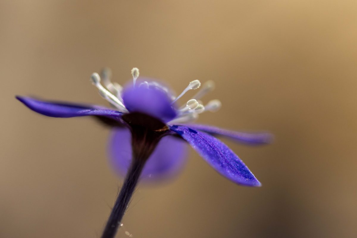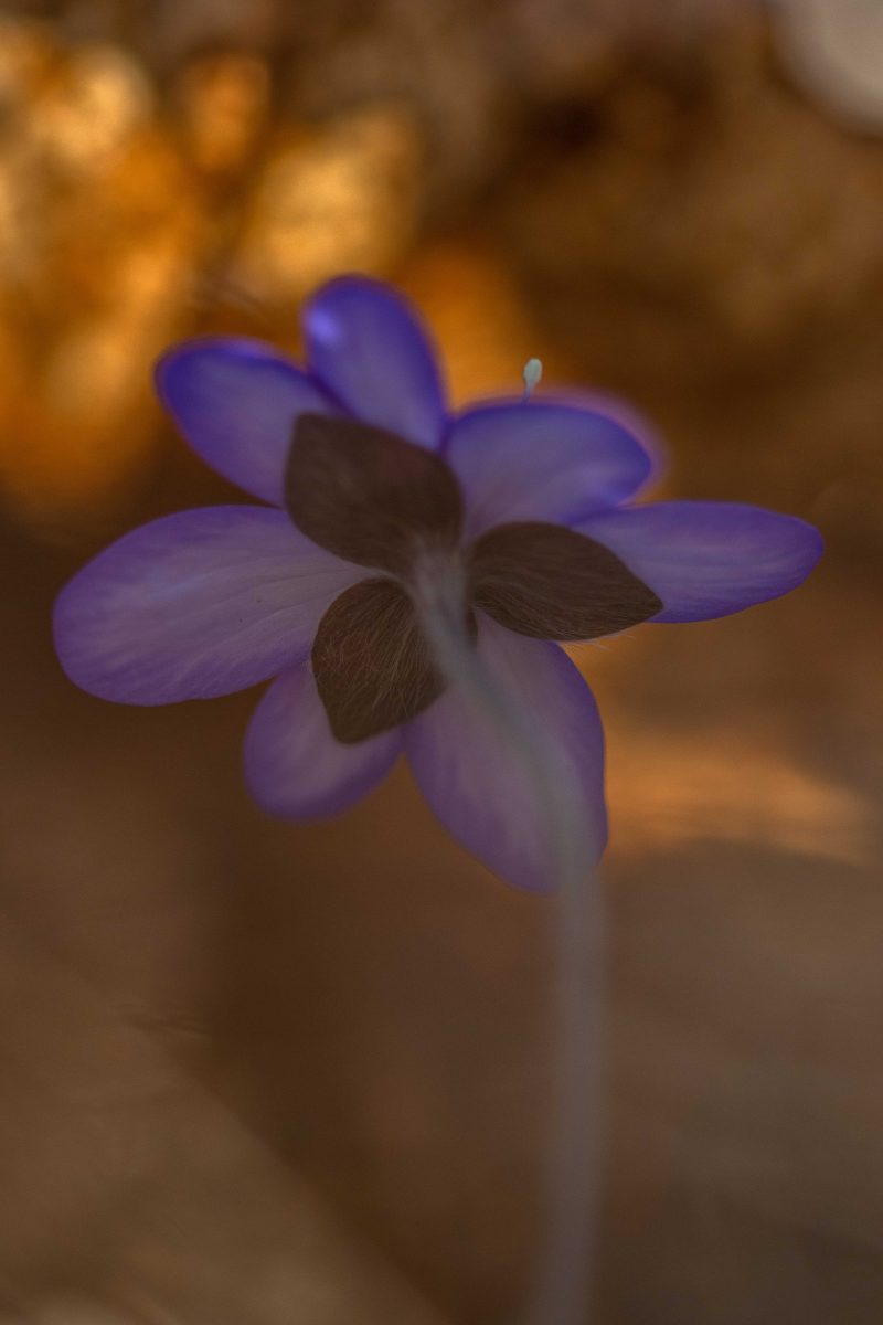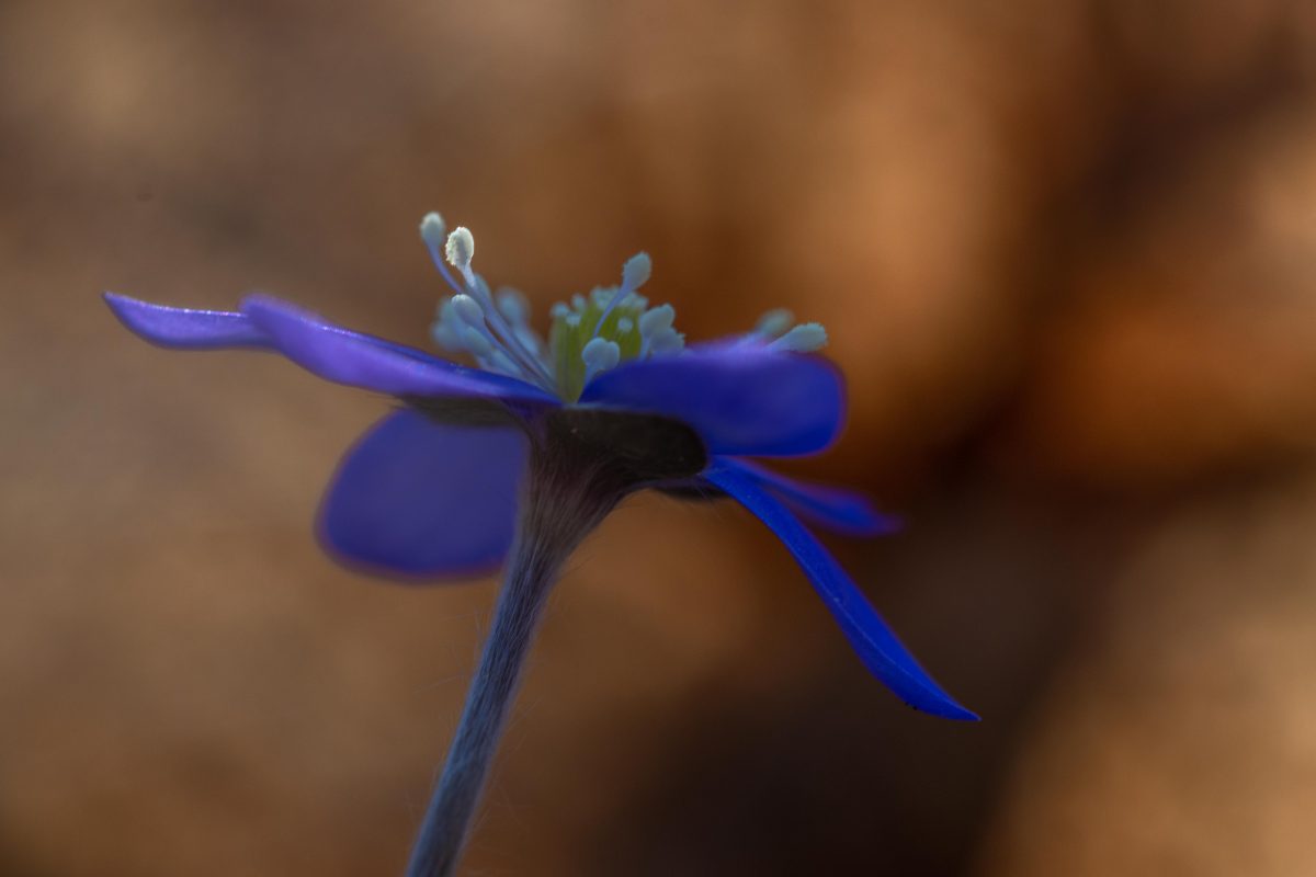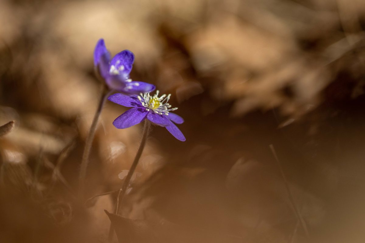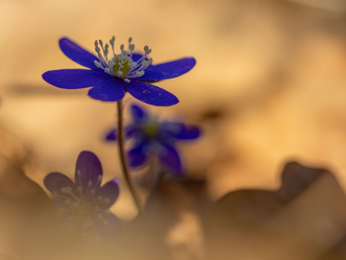 Solen stod högt på himlen och ljuset var skarpt och hårt. Det är inga bra förutsättningar för fotografering. Men blommorna var inbäddade skira brungula blad och torrt fjolårsgräs och när solstrålarna silades genom detta skapades mirakel. Ljuset blev mjukt och varmt runt blommorna och dom små ”rummen” blev som konstgallerier i mina ögon.