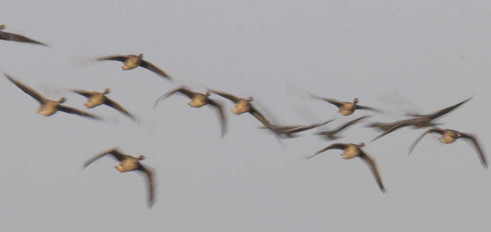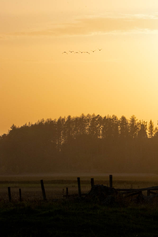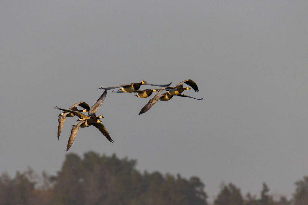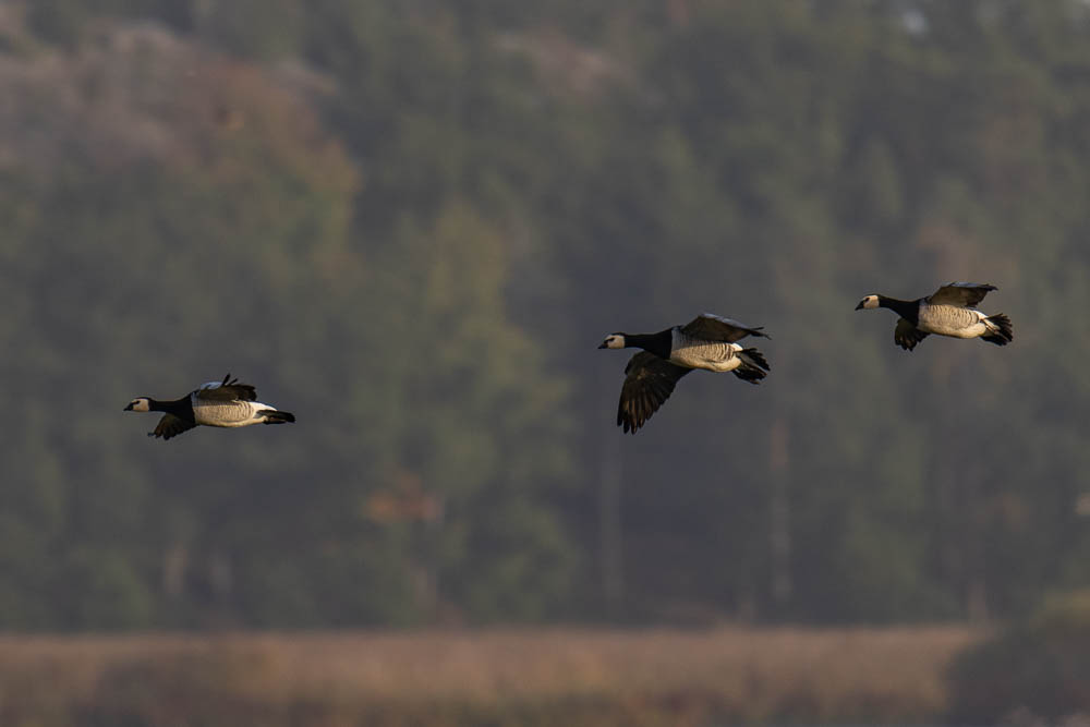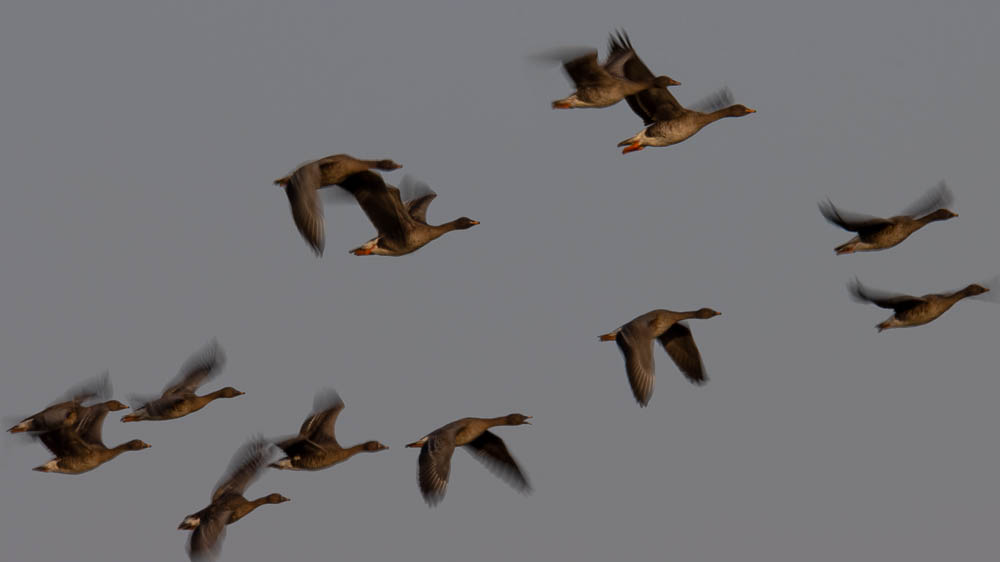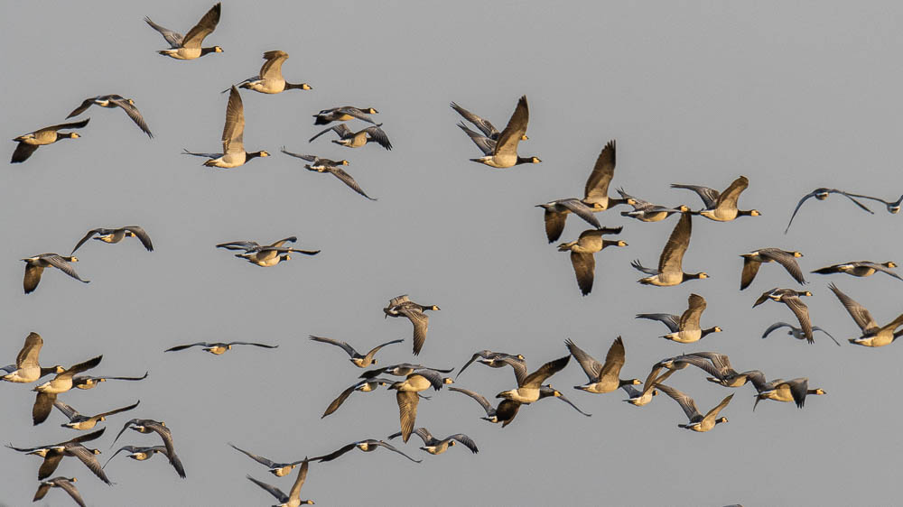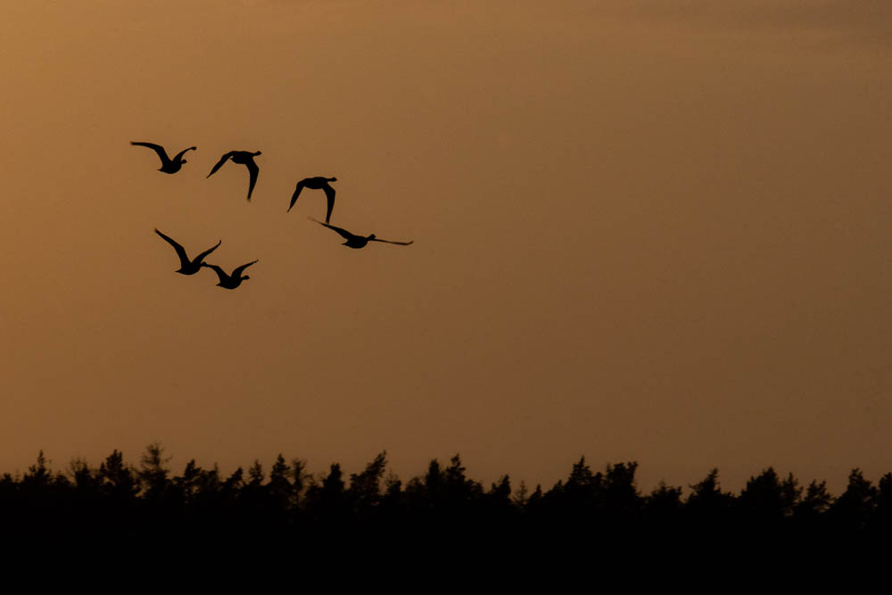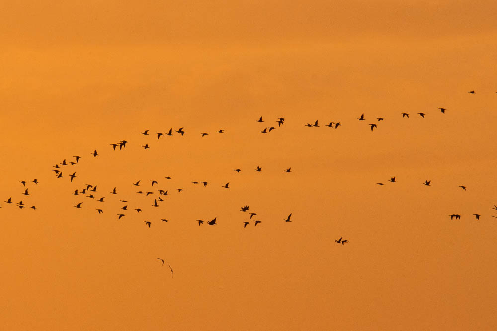 Det var en fin och klar himmel så i början hade vi fina ljusförutsättningar. Men i takt med att solen började sjunka mot horisonten fick vi börja anpassa inställningar och teknik. Jag hade valt att inte släpa med något stativ. Dels är det ytterligare en ”grej” att bära på och dels tycker jag att jag blir lite oflexibel. Jag gillar att snabbt kunna röra mig – framför allt när jag ska försöka fånga djur som rör sig. Det är ju lite svårt att förutse varifrån nästa gås ska komma flygande.