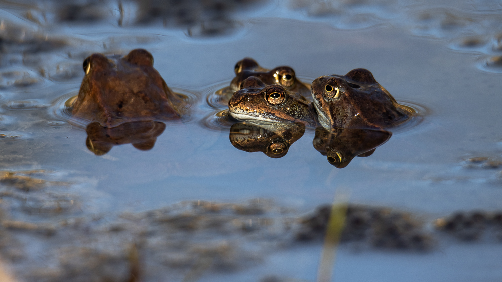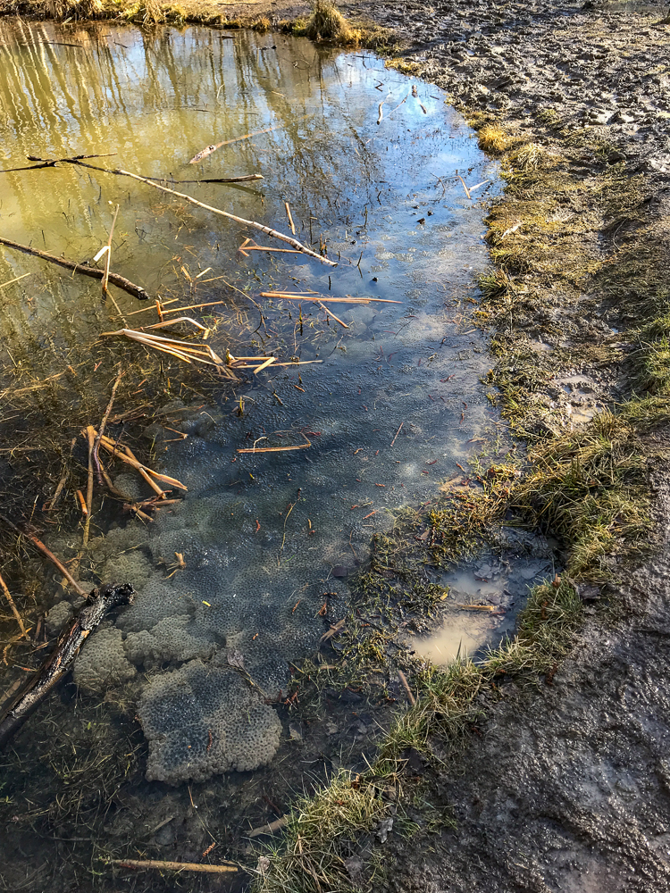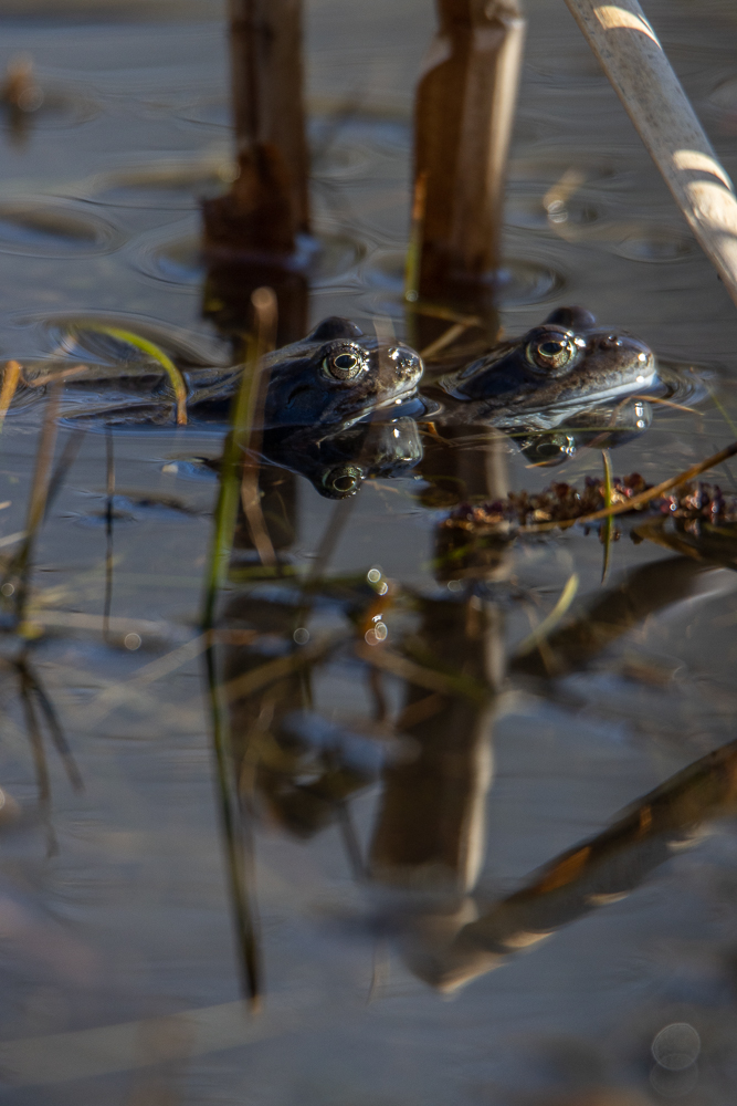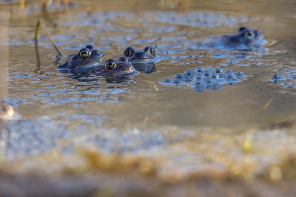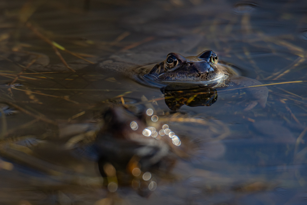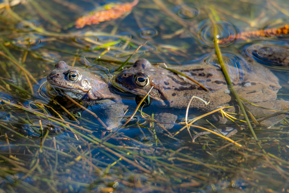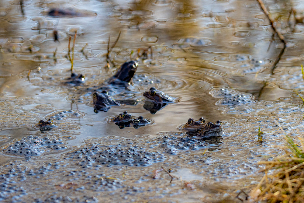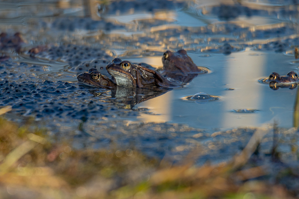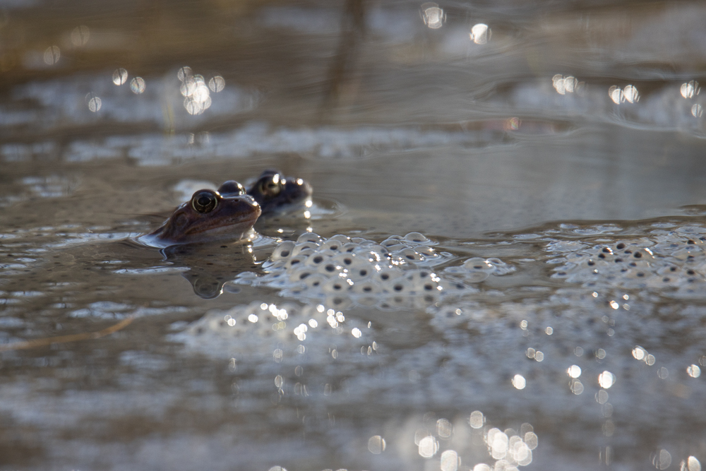 Vad är det då som har sån dragningskraft med den här dammen? Jo, grodor. Och inte vilka grodor som helst utan lekande åkergrodor.