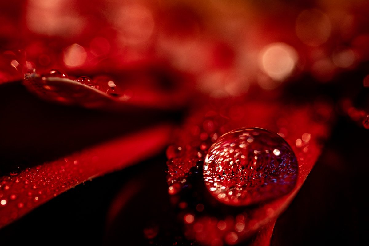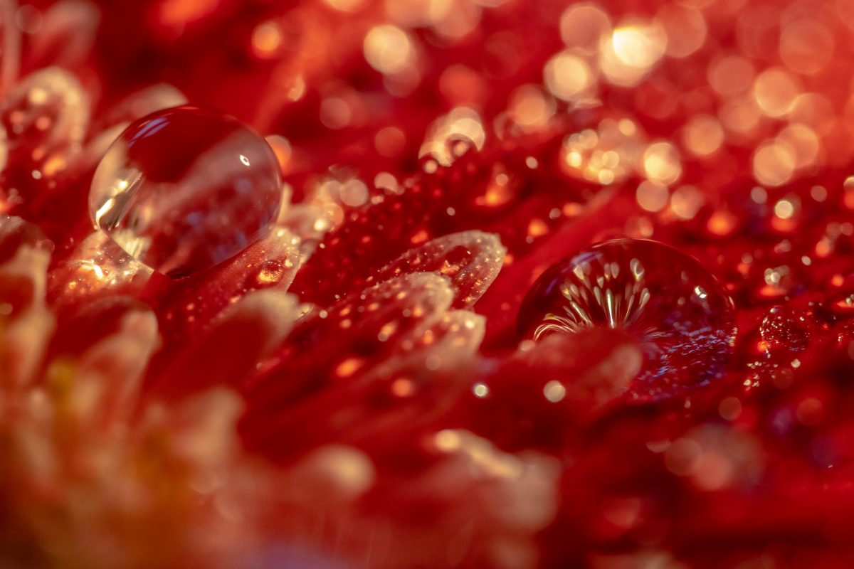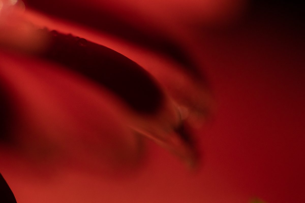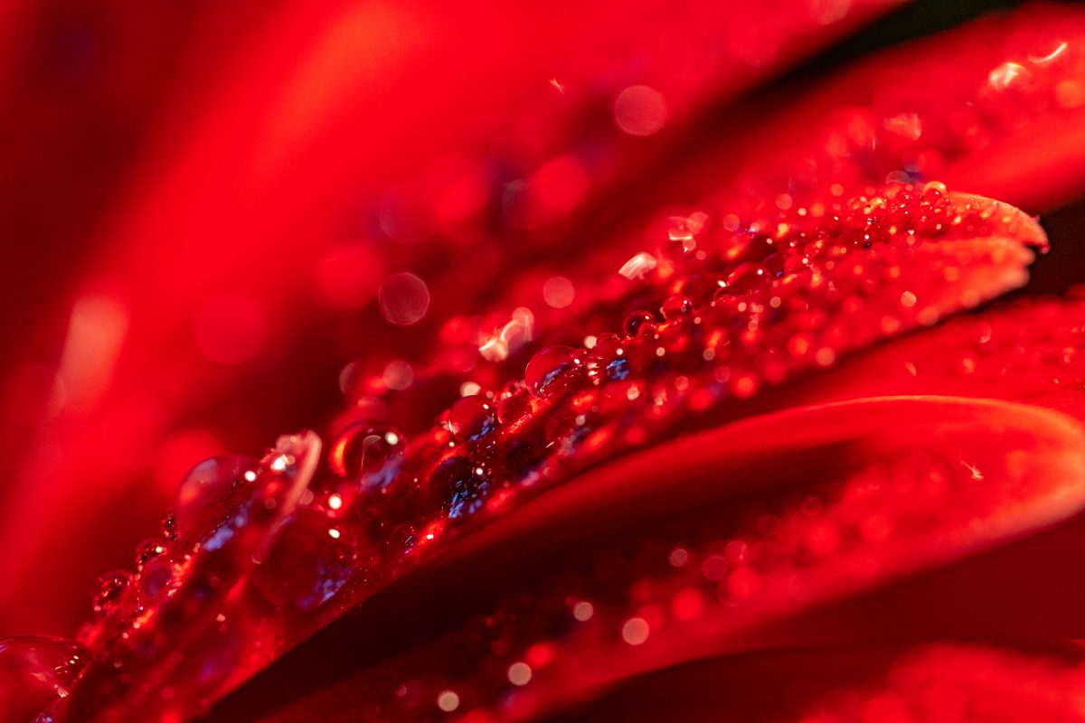 Det var först när jag började spraya vatten på en röd gerbera som jag kände att någonting hände. Plötsligt fick ljuset från lamporna en ”mening”, det gav dropparna liv. Själva blomman och dess blad blev mindre viktiga. Istället var det just ljuset och den effekt det hade på dropparna som var själva bilden.