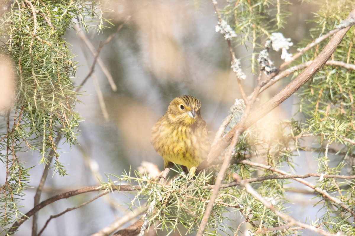 Den här lille gynnaren gosar kanske hellre i en tall, men enbusken duger den också.