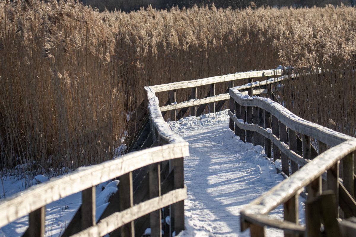 Trots värmande sol och ett stöttande bordsskiva blir dock händerna kalla och trötta efter ett tag och vi får packa ner våra grejer och balansera tillbaka på spången i vassen.